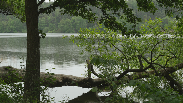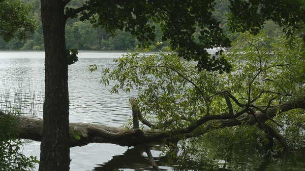 Projektet på Söder var en fortsättning på och en variation av mitt utövande på Solsidan, i en park nära mitt sommarhem på Södermalm i Stockholm, en före detta arbetarstadsdel nära centrum. Den här gången valde jag att spela in endast en bild varje morgon som jag övernattade där från juni till augusti (4.6.‐ 31.8.2016). Varje morgon gick jag ner till den närliggande parken, till stigen längs stranden och placerade stativet intill stigen. En trädstam, en silverpil, låg horisontalt över vattnet och en annan trädstam, en al, stod vertikalt och bildade ett kors med den, med vattnet som bakgrund. Jag spelade in detta kors av trädstammar tvärs över stigen, och inkluderade således alla förbipasserande i bilden, mest som snabba skuggor, utan huvuden – springande, gående, cyklande, ensamma eller i grupp. Det gick inte att undvika dem på något sätt så jag bestämde mig för att spela in deras rörelser och lita på att det skulle finnas tillräckligt med avsnitt utan förbipasserande att välja mellan vid editeringen. Snart upptäckte jag emellertid att de förbipasserande människorna egentligen var ganska fascinerande och började vänta på att folk dök upp innan jag satte igång med inspelningen. Jag hade spelat in förbipasserande förut i Three Shores (2004), som små figurer på avstånd, medan de förbipasserande nu var så nära att de knappt gick att urskilja. Till att börja med hade jag en vag idé om att stiga in i bilden, att sitta på den horisontala trädstammen, men övergav den snabbt. Det här var en allmän plats jämfört med trädgården på Solsidan och jag ville göra min bild diskret. Dessutom tjänstgjorde de förbipasserande som uppträdande, och bjöd på tillräckligt med handling.
