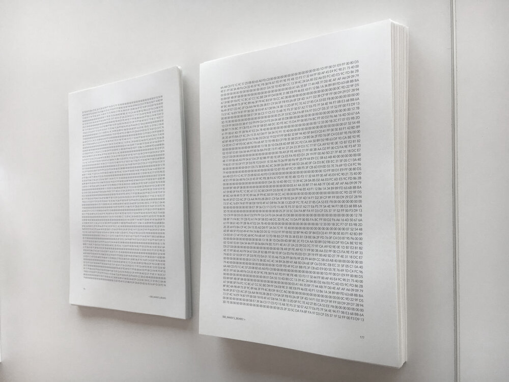 - a set of artist books each made of more than 500 unbound pages of hexadecimal code for every grid.