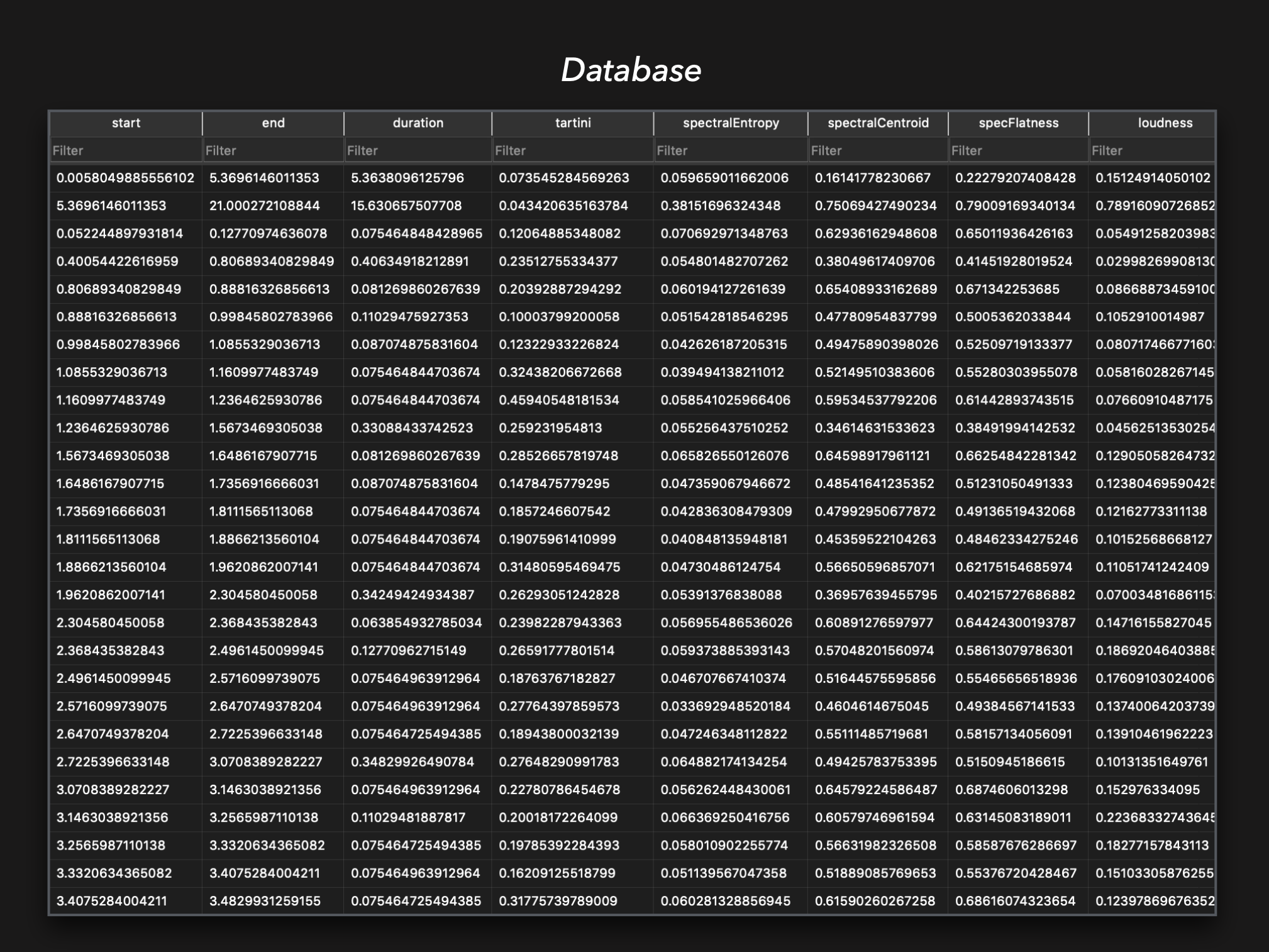 The UPIC sounds would become my dataset. Could this extensive archive of past sounds serve as a foundational or contextual basis for the development of compositional algorithms? What was interesting about the UPIC archive as a starting point was the strong character of the sound material. Most of the sounds had some sort of pitch movement or otherwise noisier parts. There were very few ‘neutral’ sounds or static textures that would easily combine or melt with similar sounds. There was also a great number of recordings that existed and were organised in the same directory structure as fifteen years before.