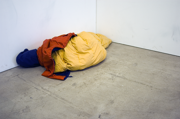 Minna H. Saa sanoa -tuotanto: Sanonko? Näyttely. Kluuvin galleria, Helsinki (2009). Esiintyjä: Eero Enqvist. Kuvaaja: Marja Söderlund.