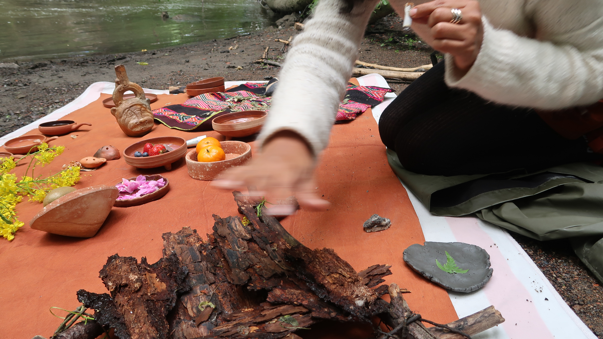 24. mai til 7. juni 2024 hadde jeg et samarbeid med Tatjana Kolpus7 og Arely Amaut8 i dette leirelandskapet der vi også prata om disse tingene. Vi ville utforske måter å tilnærme oss leirelandskapene med respekt og gode intensjoner, basert på praksiser og kosmologier fra våre forskjellige bakgrunner. Les utdrag av en samtale vi hadde under samarbeidet og hva vi gjorde her.