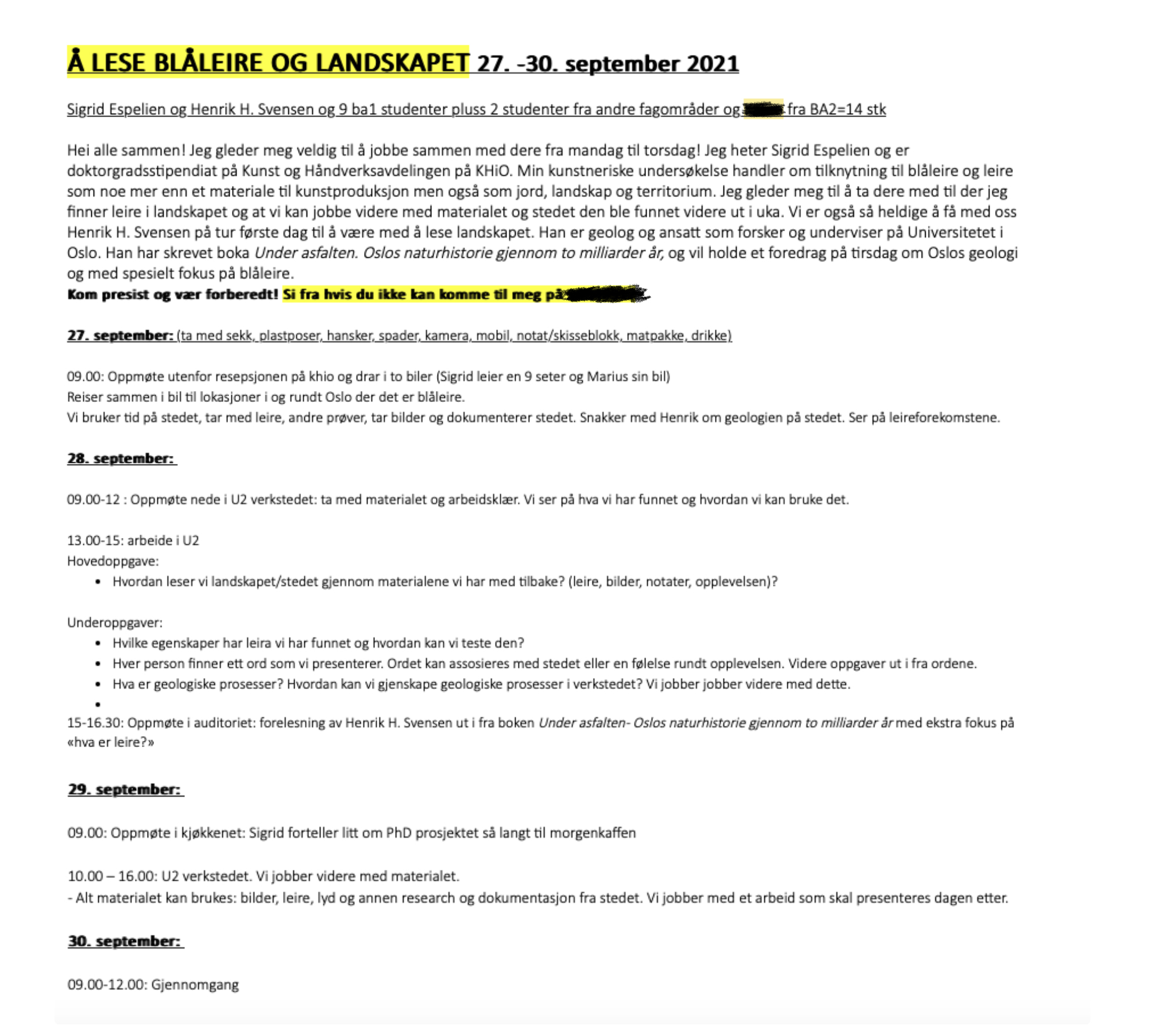 Denne workshopen ble veldig viktig for utviklingen av doktorgradsprosjektet. Jeg fikk mye tilbakemelding fra studentene at det hadde vært en spennende innføring til å lære om leire i det keramiske faget for BA1 studenter. Både det keramikkfaglige i å vite at det finnes leire i området, hvordan man gjenkjenner leire ute og prosessere og brenne den, men også det sosiale fellesskapet vi fikk gjennom å få denne erfaringen sammen.