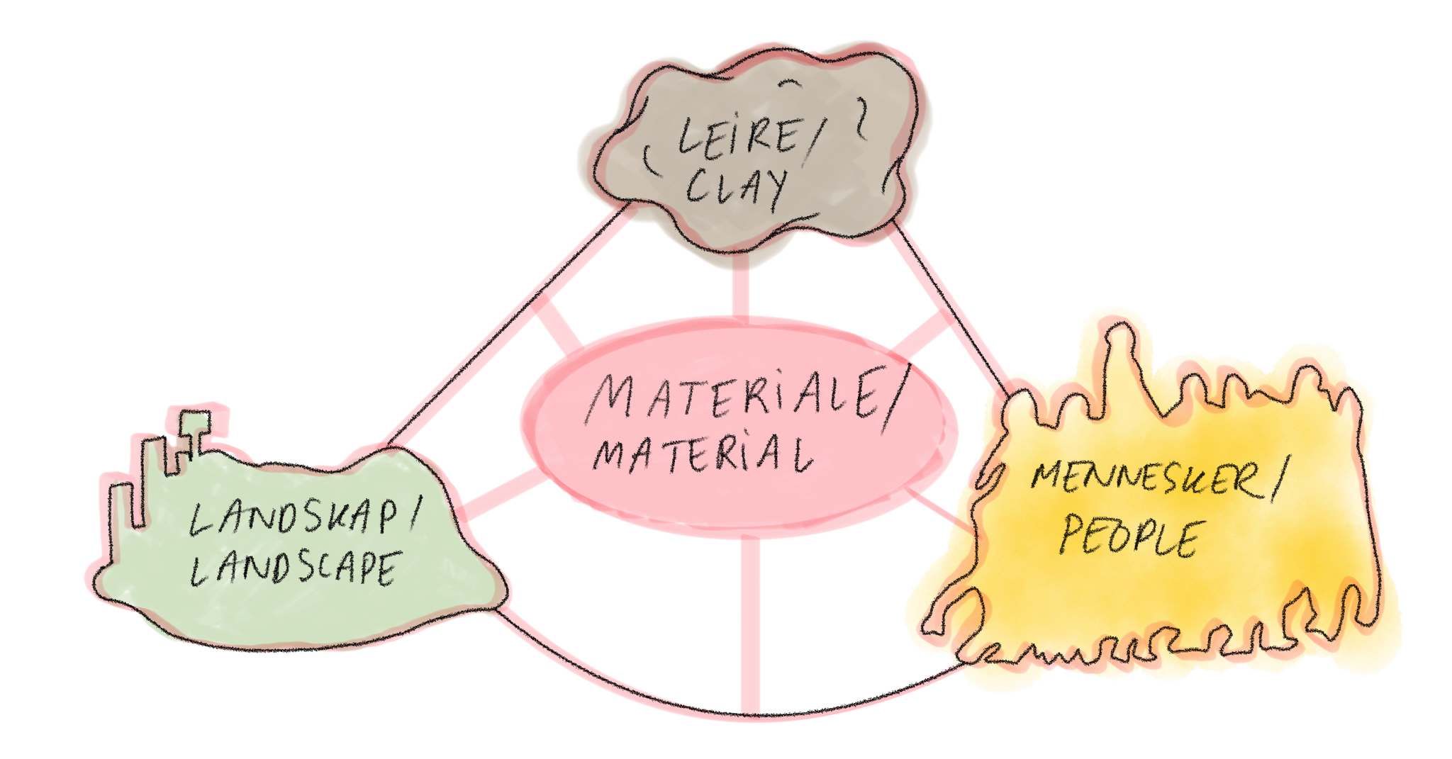 Når det gjelder spørsmålet om hva som er møtepunktene mellom blåleire og samfunnet, håper jeg i tillegg til å fysisk vise hvor den faktisk finnes der ute, at den fysiske refleksjonen og samtalene som berører leireindustrien, den keramiske kunsten, byggebransjen, landrettigheter, brukskunsten og teglhistorien kan være et bidrag til feltet.