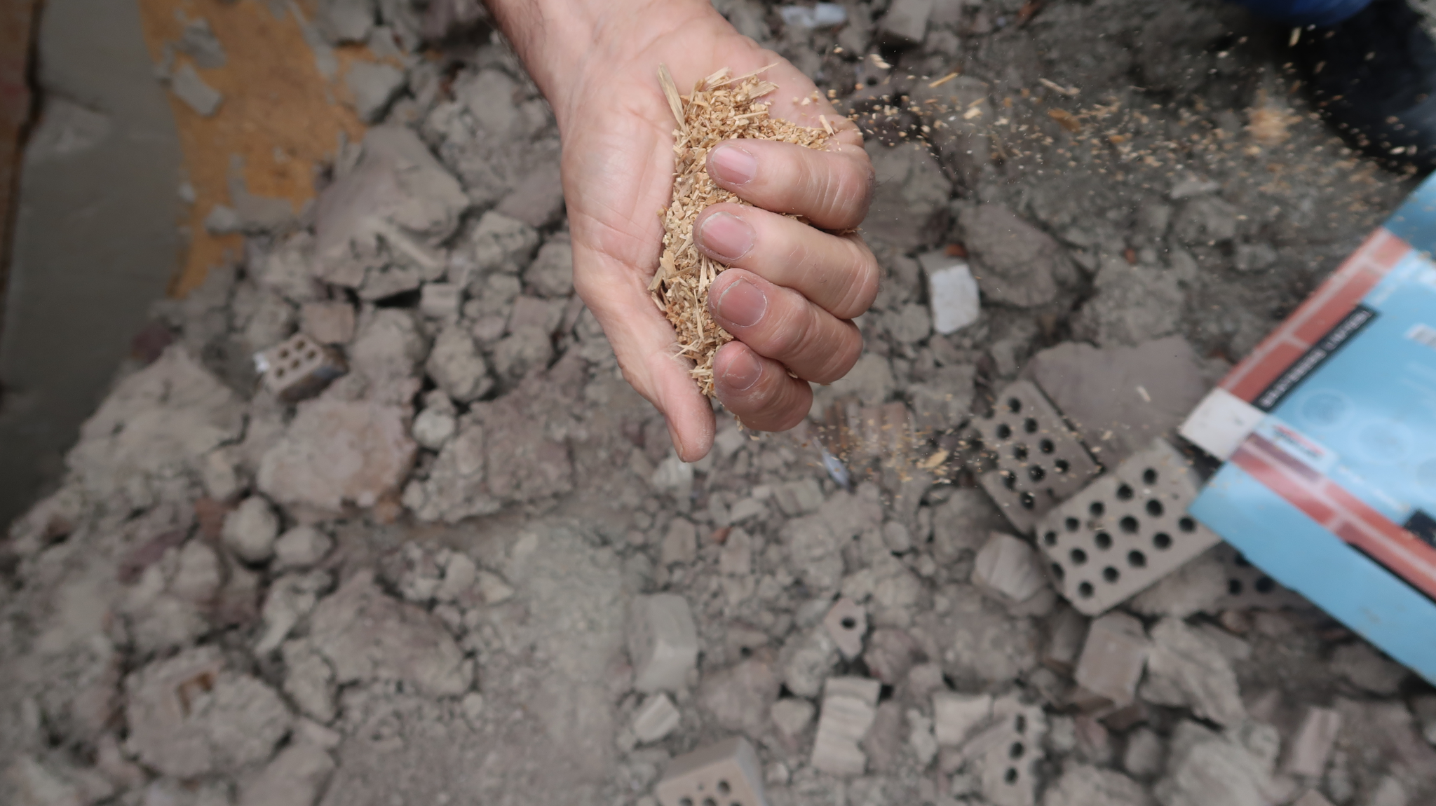 11.05.2021 Bildet er tatt da jeg og John Arne besøkte den nedlagte fabrikken i Bratsberg. Her viste han sagflisen som ble blandet inn i leiremassena. Både leire og sagflis lå fortsatt i hauger utenfor fabrikken.