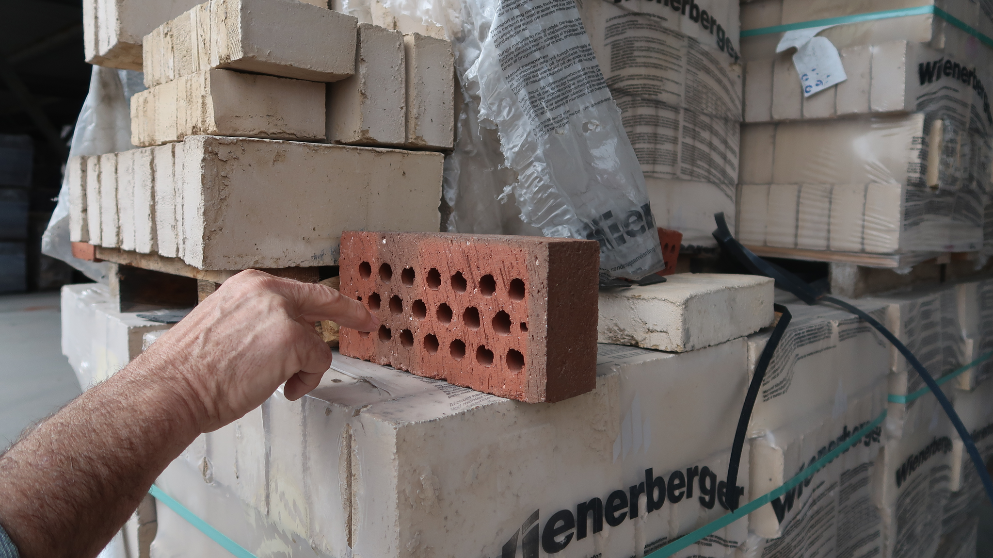 JA Men vet du at i en sånn ringovn, der får du fram veldig – for det første er det en veldig gammel måte å produsere tegl på, så får du fram spesielle effekter fordi at de fyrte jo med kull inni der, og kull er jo ikke ensartet alltid. Og det er jo forskjellige slags typer kull også, så den kullsorten som vi bruker, den kan gi noen spesielle effekter, så går de inn der og plukker ned dette for hånd, og da kan du sikkert sortere det og det kan være stein som delvis er klebet litt sammen, for at akkurat der så brant det litt mye, så de kan splitte dem for hånd, det er sånn som ikke vi hadde anledning til gjennom apparatet vårt da, kan du si, hvis det er to steiner som henger sammen, så må vi kaste dem i utgangspunktet for da takler ikke maskinen dem. Så det er mange sånne ting som – det er jo disse her kullfyrte både ringovnene og tilsvarende ovner som de har mye av i Belgia som virkelig gir fin tegl, da, det som vi produserte var jo bare byggmateriale, det var ikke noen utsmykking i selve teglen, i den forstand.