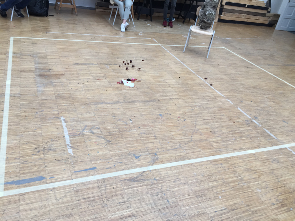 For Goethe the object is not just the flower he investigates, but the stern and the roots, the complete environment. Our initial object of investigation is Christina’s work, or more generative, our relation to trees both scientifically as personally. We wanted to treat the space at Saloun as a forest, a forest with individual trees and different types of trees, but to have a common soil from which the works arise and to share this root system (see video 1, brought in by a student). We decided that from day one we all had to put in a contribution in the space in the center of the studio, marked by tape. These first contributions were without knowledge of each others background or level, without an introduction. This start contributed to a common ground, a common level. (The informal introduction was om day 4). All these contributions would be videotaped from the start. And all students were encouraged to add their won association, and archive them in the online workspace (see above).