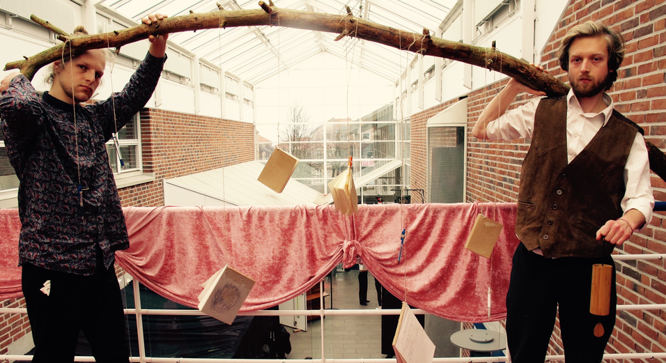 Well, that was bound to happen. After all, I just carried a massive stick with notebooks and ballpoint pens dangling from it, like lianas from a tree in some tarzanian jungle, through a crowd of flabbergasted students. “Wtf is going on?” someone already wrote in one of the notebooks. Good question. I’m asking myself the same thing.