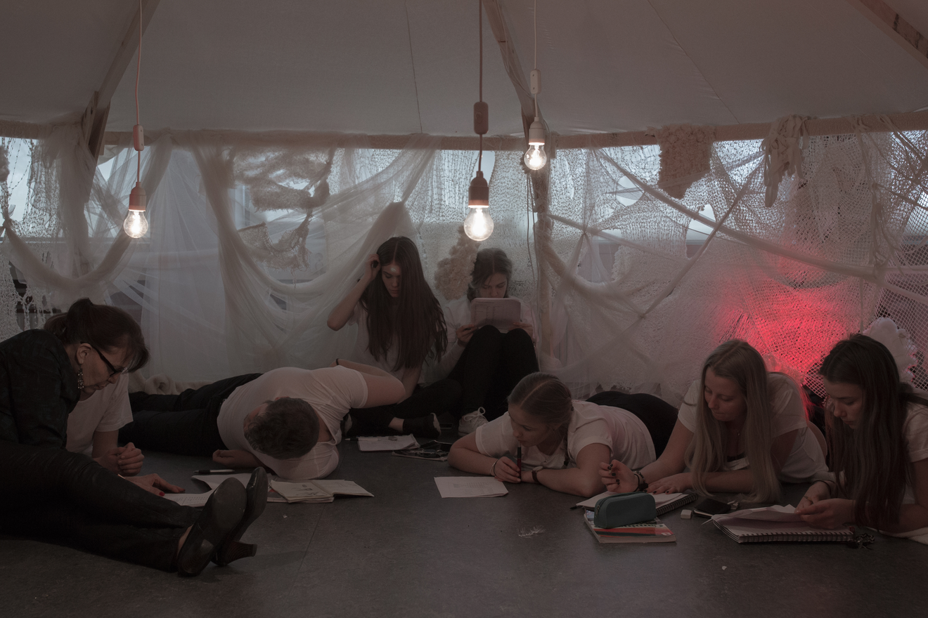 When they do, they are met by the new staff (the performers). The new staff will constantly be present at the school, facilitating alternative learning experiences for the students, both inside and outside the classrooms. They are teachers, but of an alternative, often enigmatic sort. At the Academy you meet them in their tableaus: rooms or quarters that express their imagination and sensuality. Spending time with them is like meeting part a mythic character, part an existential guide - or provocateur. It can be like listening to a subconscious voice, uttering strange thoughts and desires. Or like having a good conversation with an old friend. Sometimes, simply like finding new playmates in the schoolyard, jumping around in puddles, making up new games. They are also “just” human beings. The sensuous and imaginative ways of being among the performers are not to hide their humanity. On the contrary, it is there to strengthen it, to make authentic encounters between teachers and students possible.
