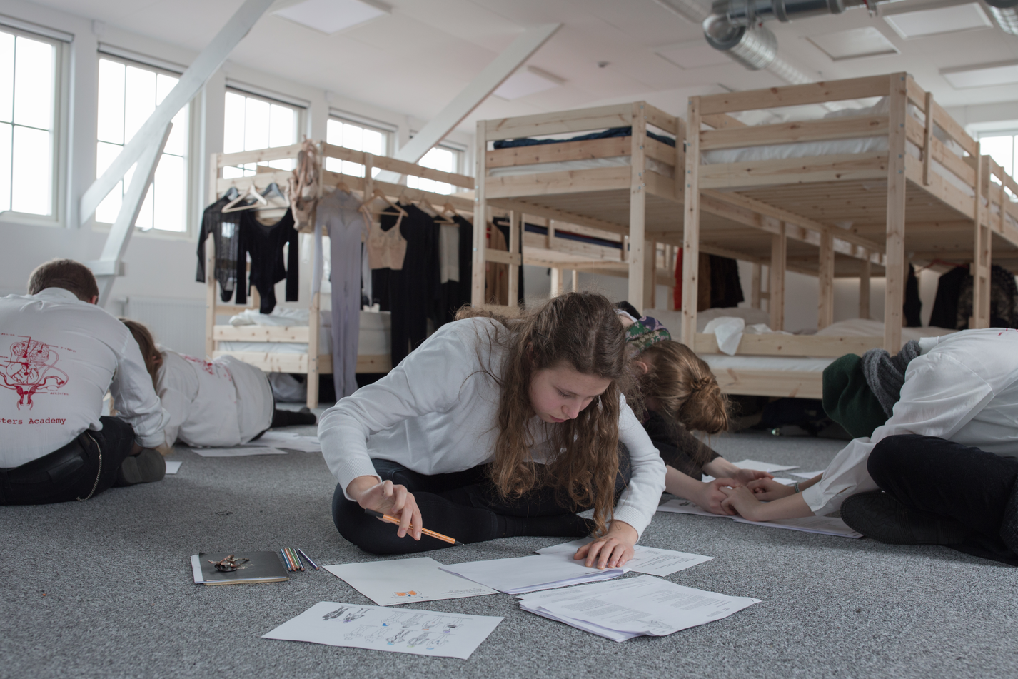 This is why many of the teachers have prepared alternative teaching methods in their respective fields. In one social science class, for example, The Keeper of Undisturbed Thoughts engages his students in abstract painting. Just before that they have read articles on poverty and child-abuse, but instead of writing an argumentative text about it, they were told to make notes of their emotional responses and then to transform these into a painting. This is one example of the aesthetic experimentation that is going on as the two Academies merge together.1