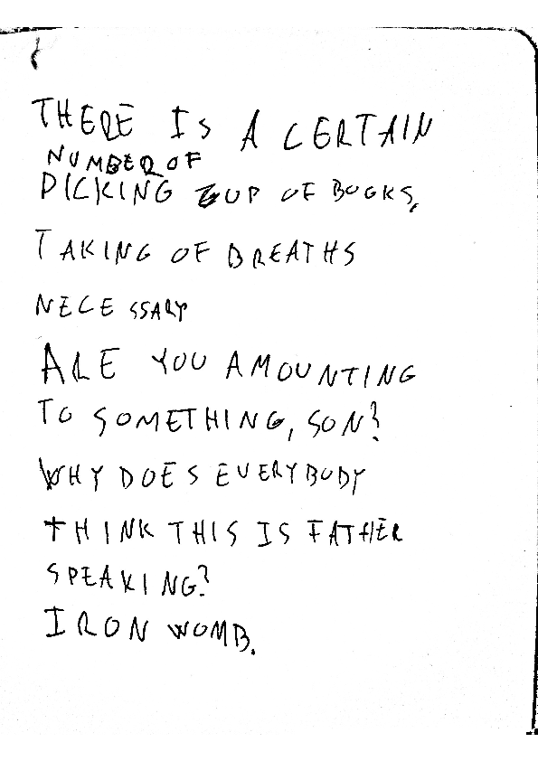 “You see, we like writing,” The Vibrator continues. “We write to explore our poetic selves. When you write, all the loud voices, the ones you already know back and forth, might steal the picture at first, and then it’s good to just write it out, all of that stuff that you might find boring, or uninteresting. Maybe it won’t be. And maybe, getting that out, you make room for something else in you that is also speaking.”