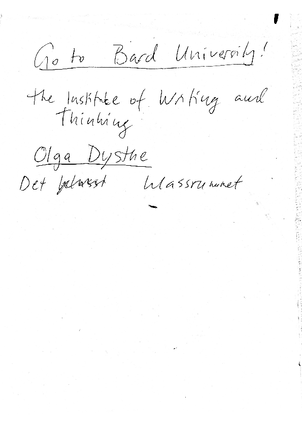 The students’ writings during the poetic meditations comprise the potent material from which the text’s reflections draw their energy. Therefore quotes from the notebooks play an important role in the narrative. When the notebook entries are from The Vibrator, The Shepherd or The Mongrel, and not the students, this is clearly indicated.