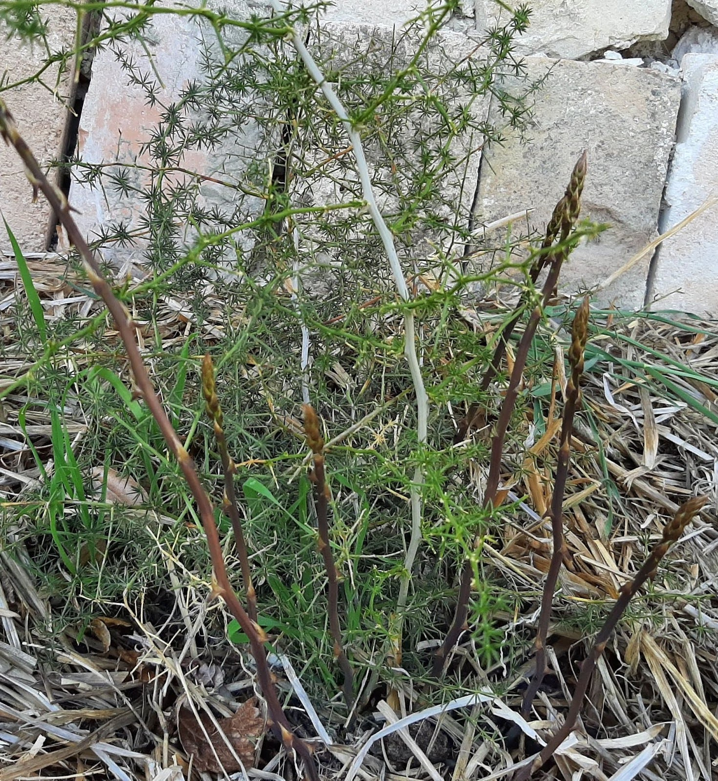Late March and April is wild asparagus season in Capestrano and if you are lucky you can discover a plant in your own garden. It is important that you do not harvest all of the spears since doing so will kill off the plant in future seasons. The remaining spears also grow into larger ferny plants that are helpful, particularly in the wild, for finding the plants in the first place as the asparagus spears themselves are highly camouflaged.