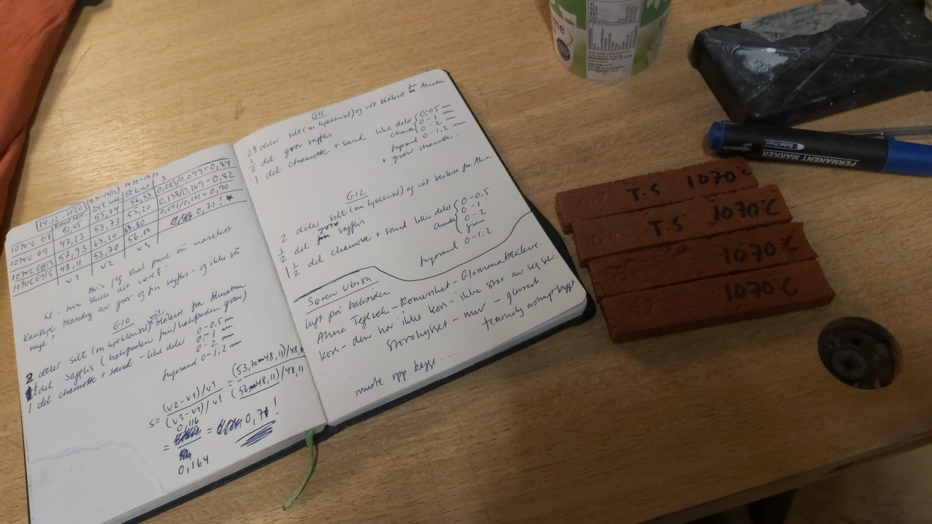 15.12.2020 Testing av frostsikker masse der jeg veide keramikkstaver når de var brent, og etter de hadde kokt i vann og ligget i vannet et døgn for å måle porøsiteten. Dette er basert på et amerikansk system (digitalfire) for testing, og jeg fikk aldri helt de riktige tallene, og det var da jeg henvendte meg til fagfolk i Norge i stedet.