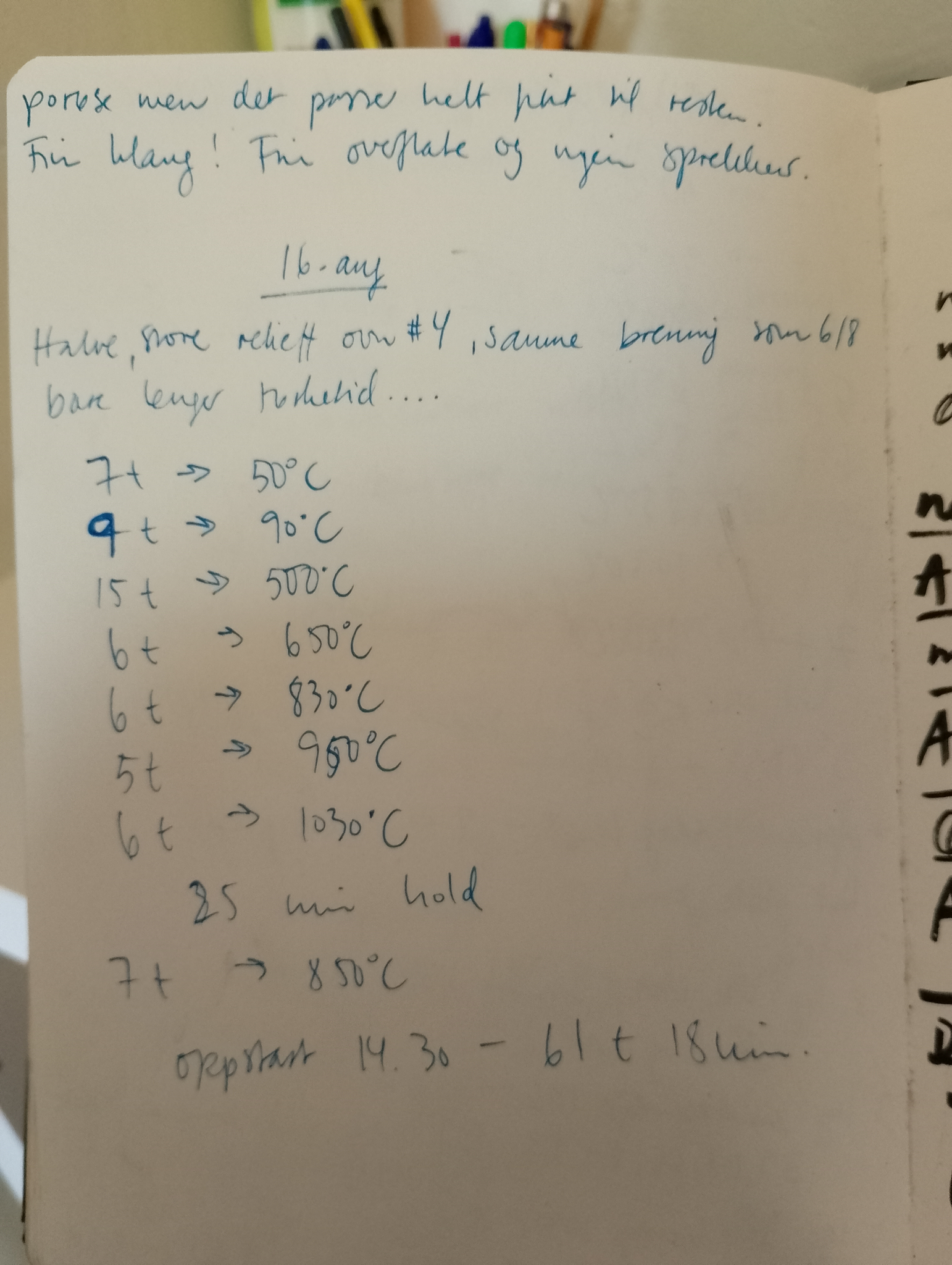 Første gang jeg brant relieffet, gikk det altfor fort. Det var da jeg tok kontakt med tidligere fabrikksjef på Bratsberg teglverk Jon Arne Rinde som fortalte om hvordan de hadde gjort det på fabrikken. Les en senere samtale med han her.