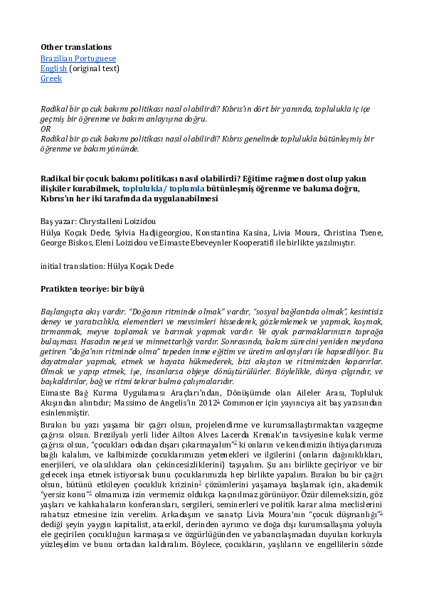 Loizidou, C. (May 2024) “Connective practices in community-integrated arts, nature- and tradition-based learning and care, across the divisions of Cyprus” [visual essay] in Artistic Connectivity Unfolding (2024)