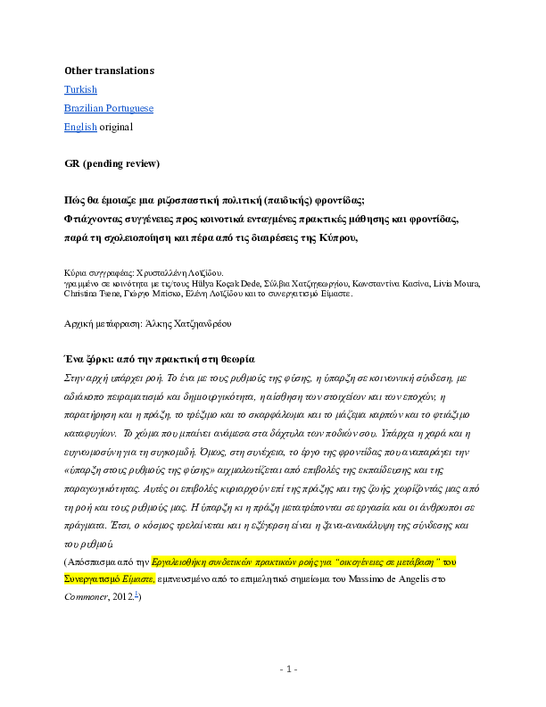 in Greek (pending review), Turkish (in progress) and Portuguese (almost final)