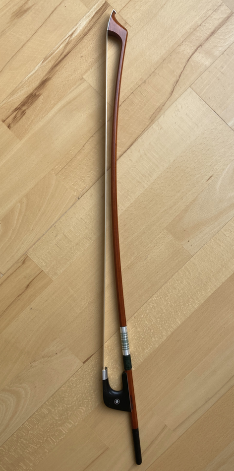 The first approach uses a simple reconfiguration of the bow—instead of playing with the hair, we rotate the bow and use the wood of the stick, either to pull out a sound or to strike the instrument in a percussive manner.