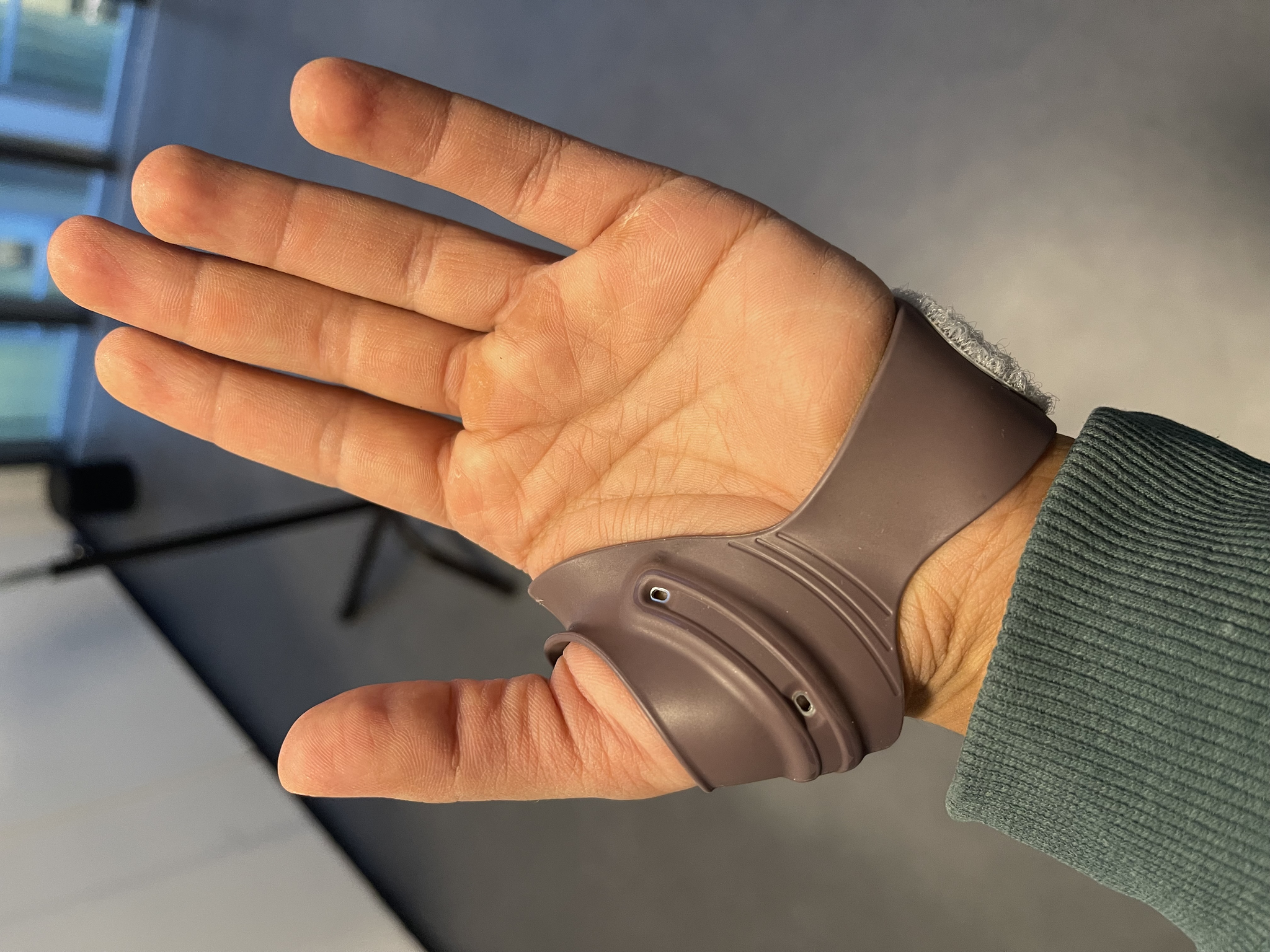 Nytt forsøk hos ortoped etter at den første støtten ikke fungerte. Her har jeg fått kinesioteip som jeg skal spille med den kommende perioden.
