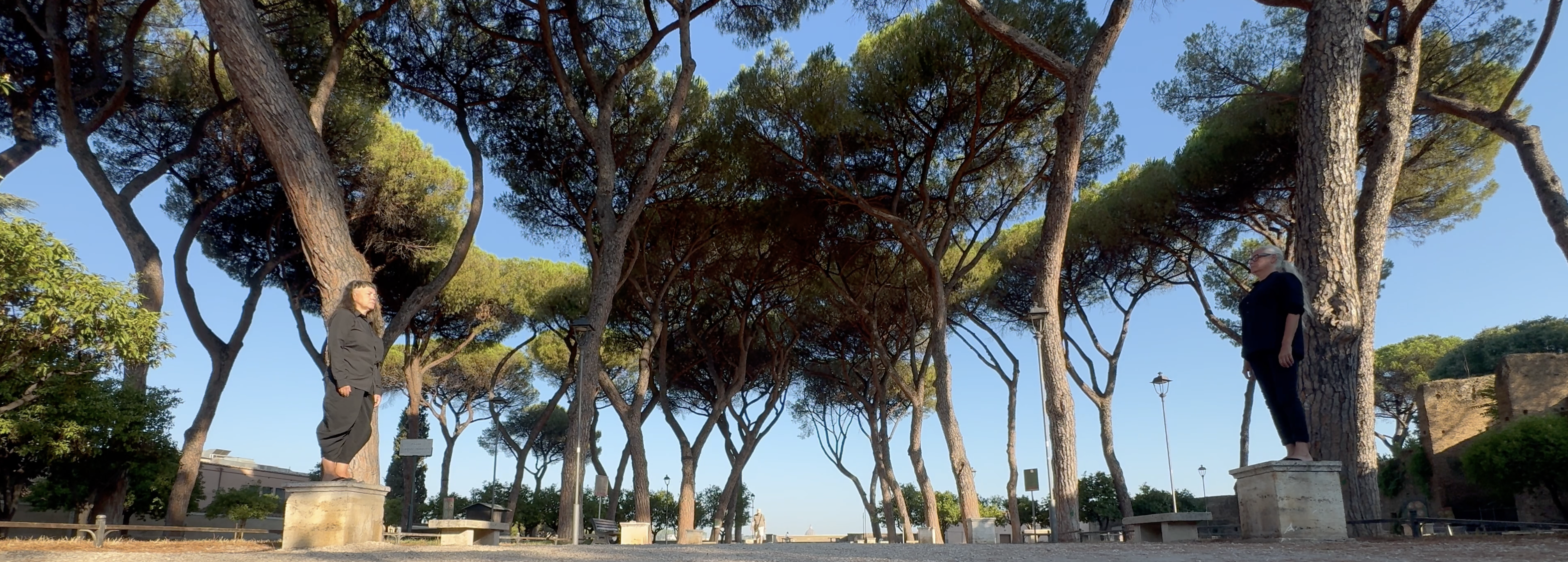 The video was made at the Orange Gardens in Rome Italy as a compliment to the instructions. The set up in the orange gardes across the street where the artists had their accomodation (Circolo Scandinavio), have a number of stone podiums providing for the artists not to do the score infront of sculptures but rather becoming sculptures and doing the gestures of the score.