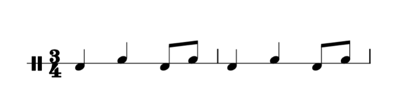 I used the previous conga pattern and the idea shown in the First sketch of the drum part as a reference to create a short melody that serves as an interlude between sections of the piece. For the percussion solo at the end, I used the same idea with some variations and in 7/4 time.