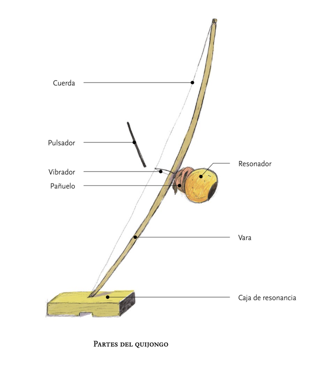 The beginning of this piece is marked by the double bass line played with a drumstick, and some effects played using the strings of the piano with the hands. The idea of this introduction is to represent the quijongo. For this, I showed Julia (piano) and Nikolai (double bass) an image and a video of what this traditional instrument sounds like.