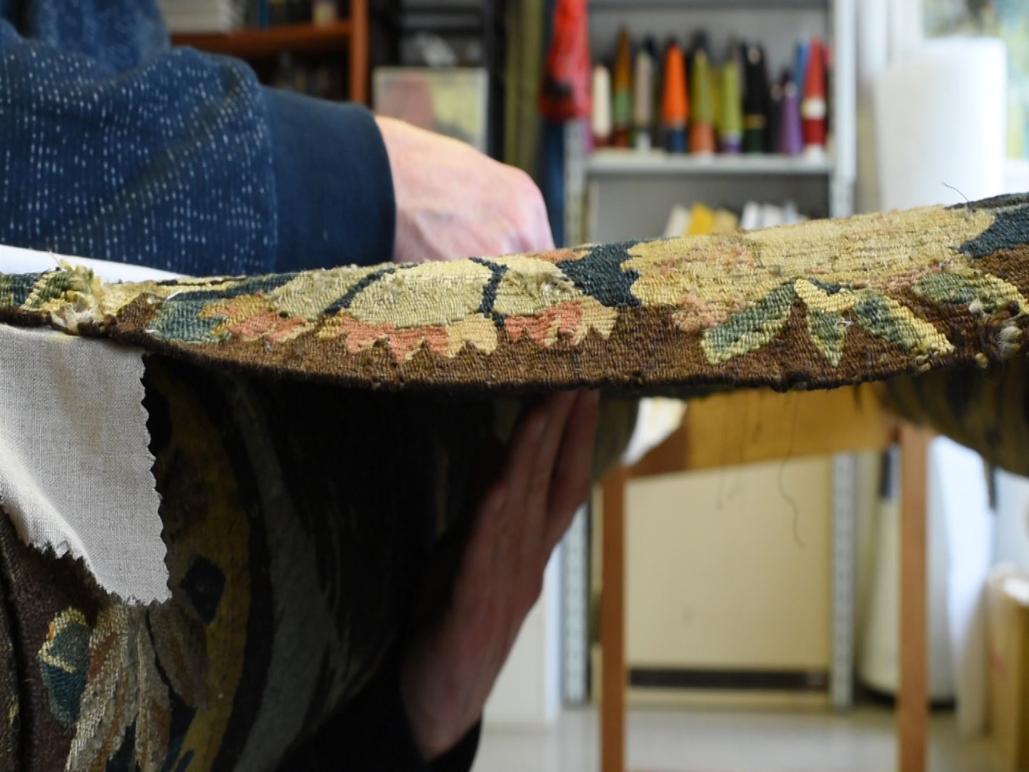 Unlike an archaeologist, and perhaps closer in this respect to the approach of an anthropologist, I immersed myself in a living space and terrain. For the first few months, I was fully and intensely submerged in this special place that is the conservation workshop, visiting it every week, interviewing the conservator-restorer, observing him, filming him, consulting his archives, in order to gain a better understanding of the different components of his work. I also met the owners of old tapestries and interviewed them about the history of their tapestries, which had often been inherite.