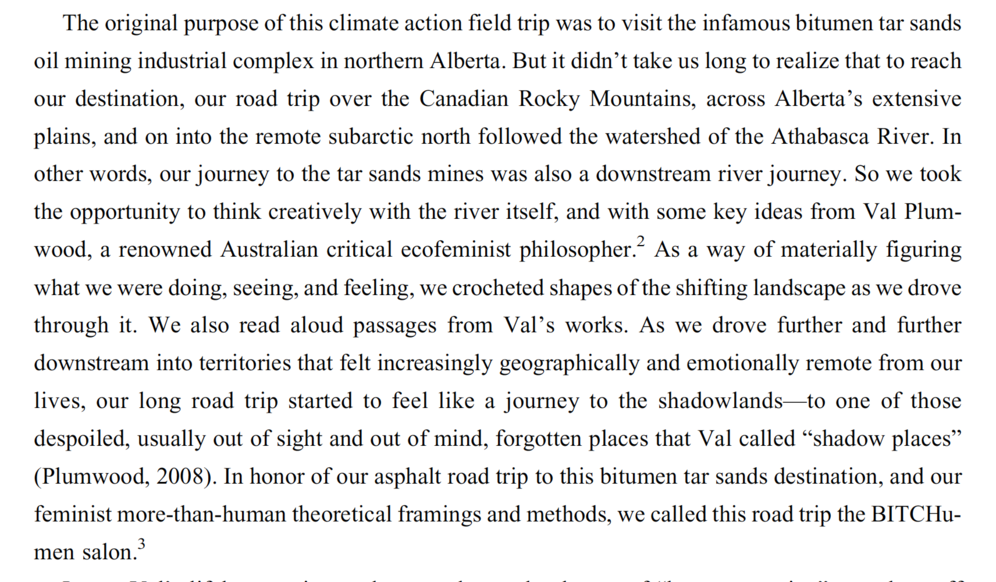 This exposition charts a creative collaboration between two humans, two lakes and a stormwater drain. By thinking with water as archive and unknowability, making art with the water-bodies of significance to them, and drawing upon the thoughts of key scholars and Indigenous artists, the authors explore questions of ancestry, memory, belonging, and ecological recuperation. Throughout this process, they reflect upon and dialogue about the pedagogical implications of their creative collaboration, undertaken at the intersection of new-materialist arts and common worlds environmental education.