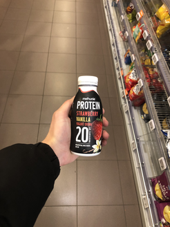 Eet iets lichts en gezonds zoals een paar rijstwafels met pindakaas (waar Mats veel van houdt) en een proteine shake.