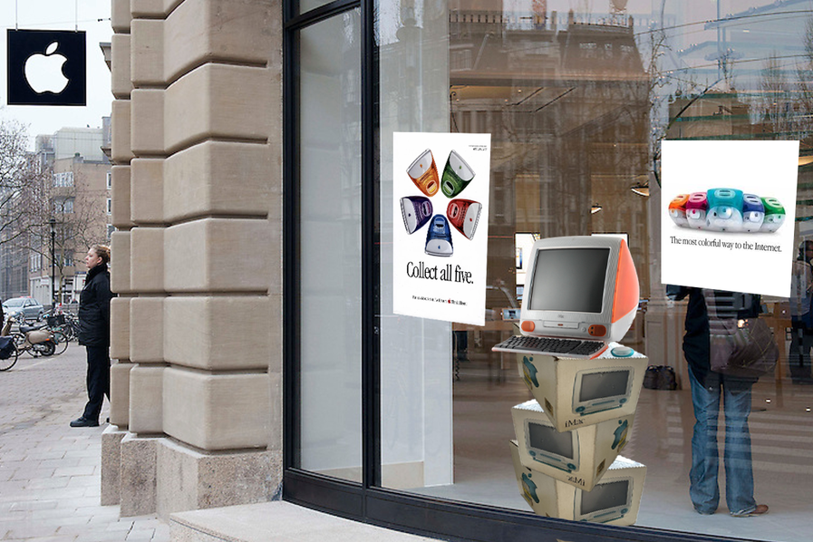 Ik stelde mij voor dat ik een 80s/90s etalage zou bouwen voor de etalage van een Apple Store (het liefst Leidseplein, Amsterdam).