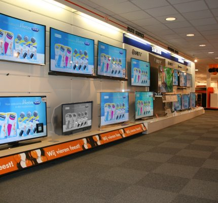 In een winkel als de Expert, heb je altijd rijen vol met de grootste en scherpste televisies. Ik had het idee om tussen deze tv's, 1 oude zwart-wit tv te plaatsen. Deze speelt hetzelfde af als alle andere tv's.