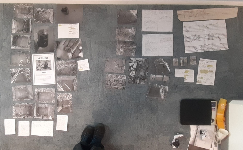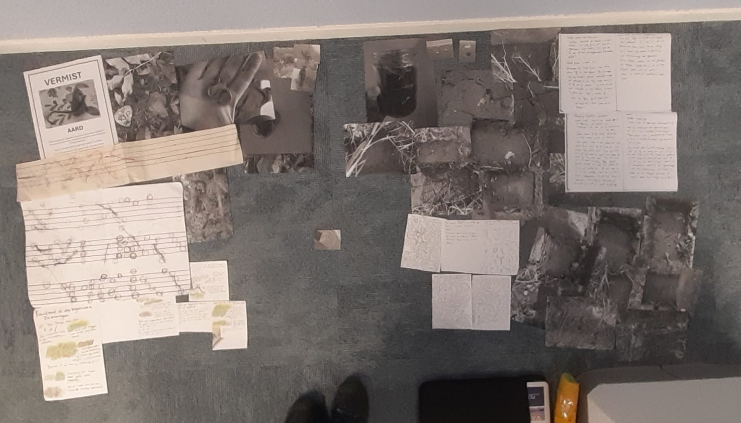 Toen ik de foto's ging sorteren op wat ondergronds is en bovengronds, waren er een aantal twijfelgevallen waardoor ik in de war raakte wat nou precies telt als bovengronds en wat als ondergronds. De foto die ik in een bekertje had geplakt voor de installatie van de visualisatieles, telde voor mij in die situatie als ondergronds. Echter was het een foto van de grond onder een stoeptegel. Toen ik de foto nam, vond ik het meer tellen als bovengronds. Maar goed, ik raakte dus in de war: is de grond onder een stoeptegel nou boven- of ondergronds?