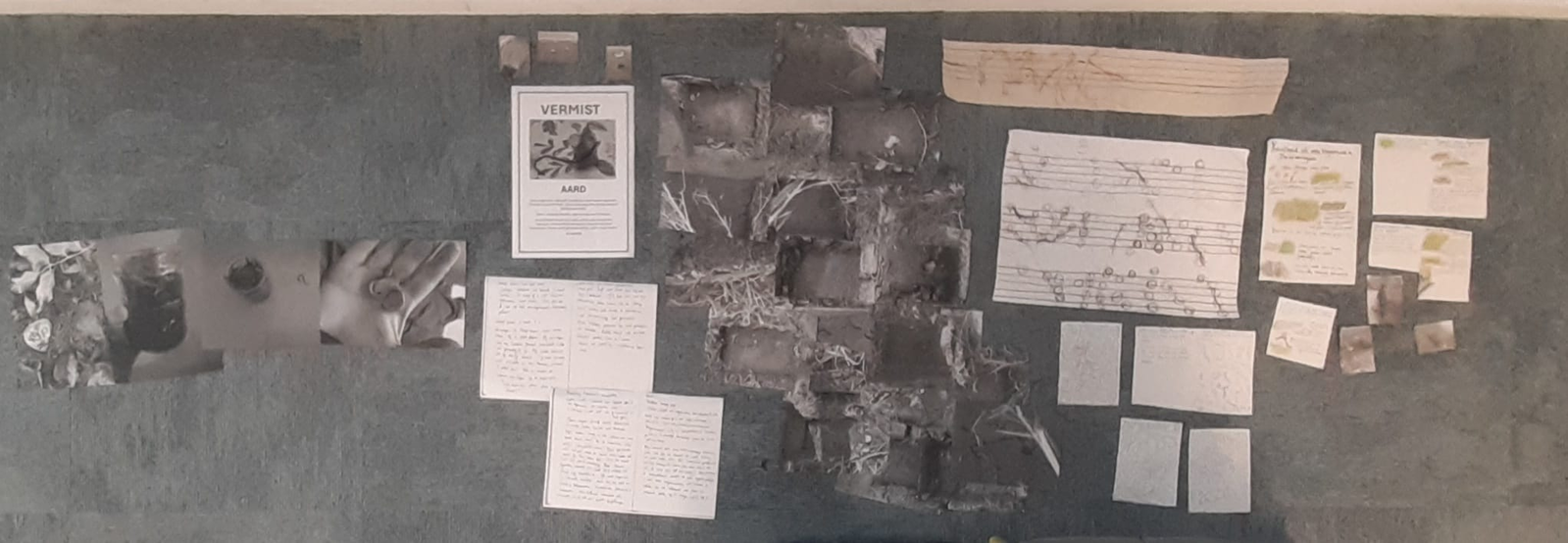 Er zijn foto's waarbij een regenworm in een pot zit, of een bekertje die symbool staat als leefomgeving van de regenworm. Het zijn een soort afgesloten ruimtes, en worden anders ervaren dan de ruimte er omheen. Ik raakte gefascineerd door wanneer iets aanvoelt als een andere ruimte. Is er altijd een fysieke barrière nodig om een ruimte af te scheiden van een andere ruimte? Of kan het ook met het gevoel te maken hebben? Kan een ruimte eruit zien als 1 ruimte, maar worden ervaren als meerdere ruimtes? En kan je dan het ondergrondse en bovengrondse leven tegelijkertijd ervaren?