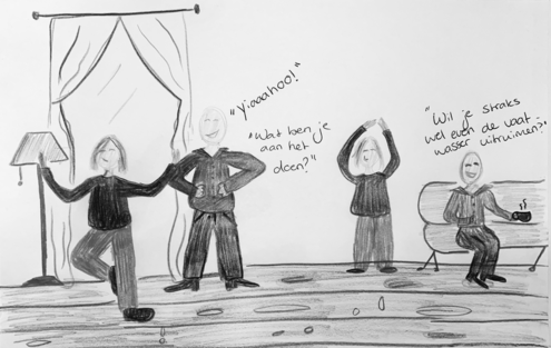Hieronder beschrijf ik enkele van deze culturele gewoontes en de reacties van mijn omgeving. Ik heb deze ervaringen gedocumenteerd met schetsen, en mijn persoonlijke gevoelens op artistieke wijze vastgelegd, net als bij methode "Emobied and embedded research", door middel van creatief vormgegeven data.