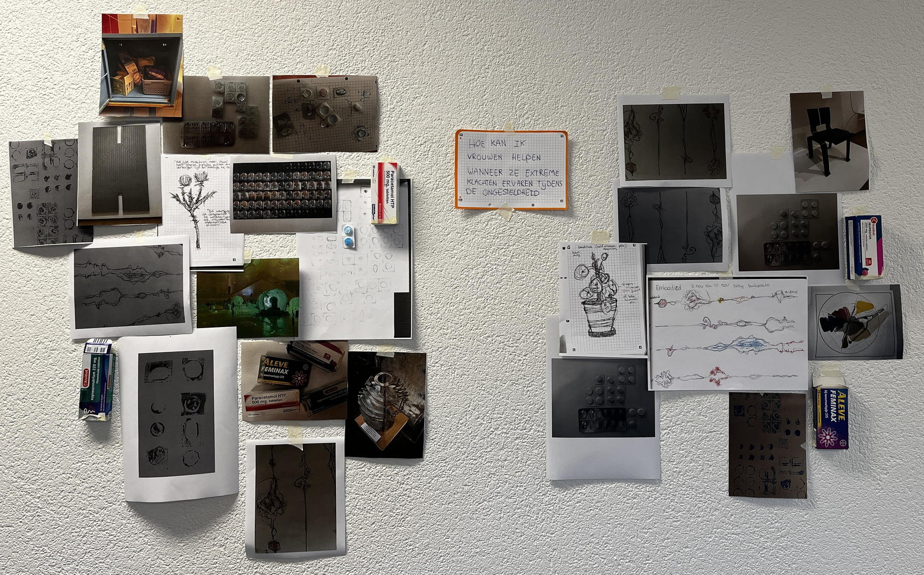 Het inhoudelijke aspect speelt zeker een rol in mijn werk, maar mijn focus ligt vooral op de vormgeving. Mijn doel is om het onderwerp uit de taboesfeer te halen en bespreekbaar te maken. Waarom krijgen vrouwen bijvoorbeeld geen dringende hulp wanneer zij structureel veel pijnstillers gebruiken, terwijl een drugsverslaafde die blijft gebruiken wel ondersteuning ontvangt?