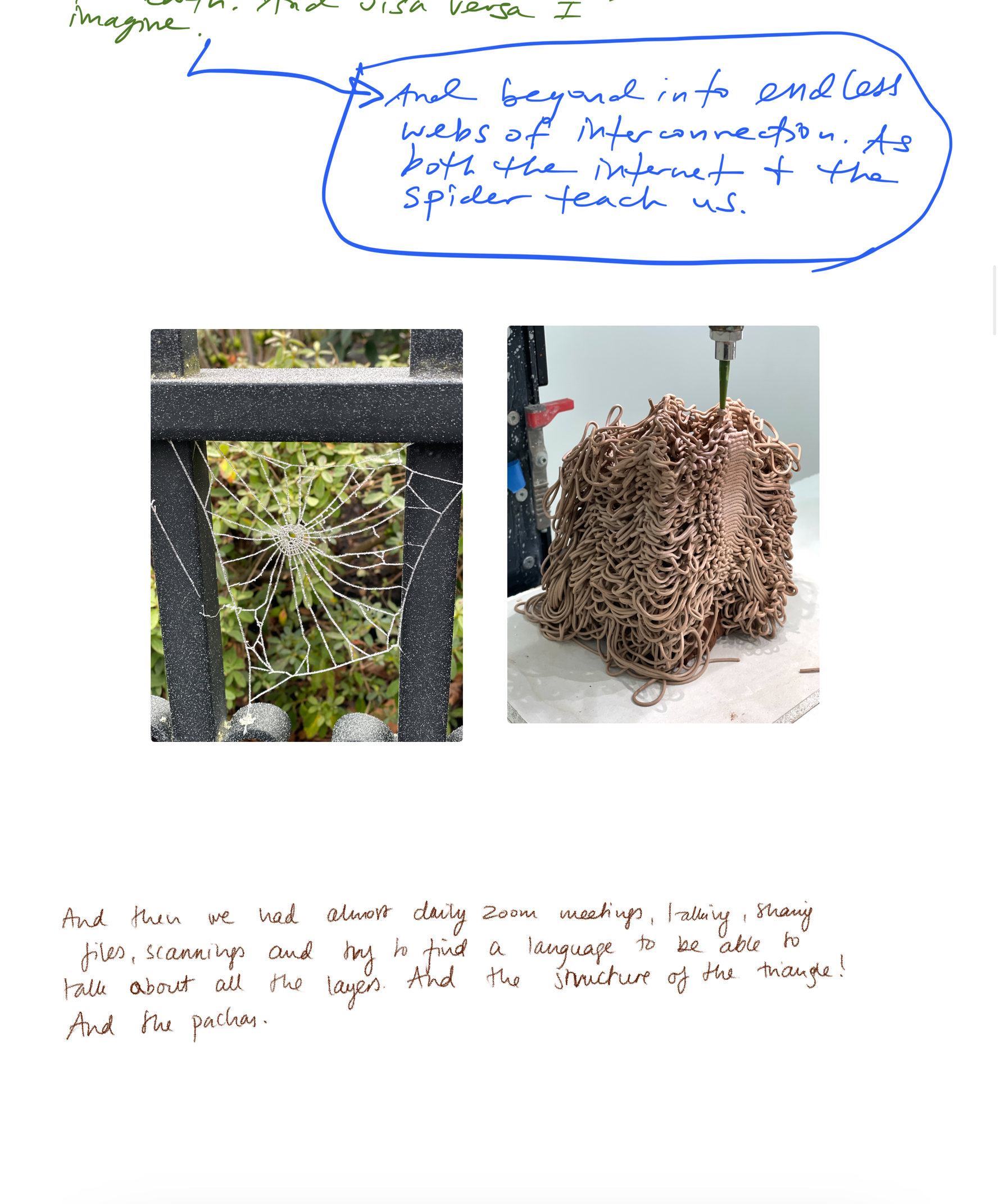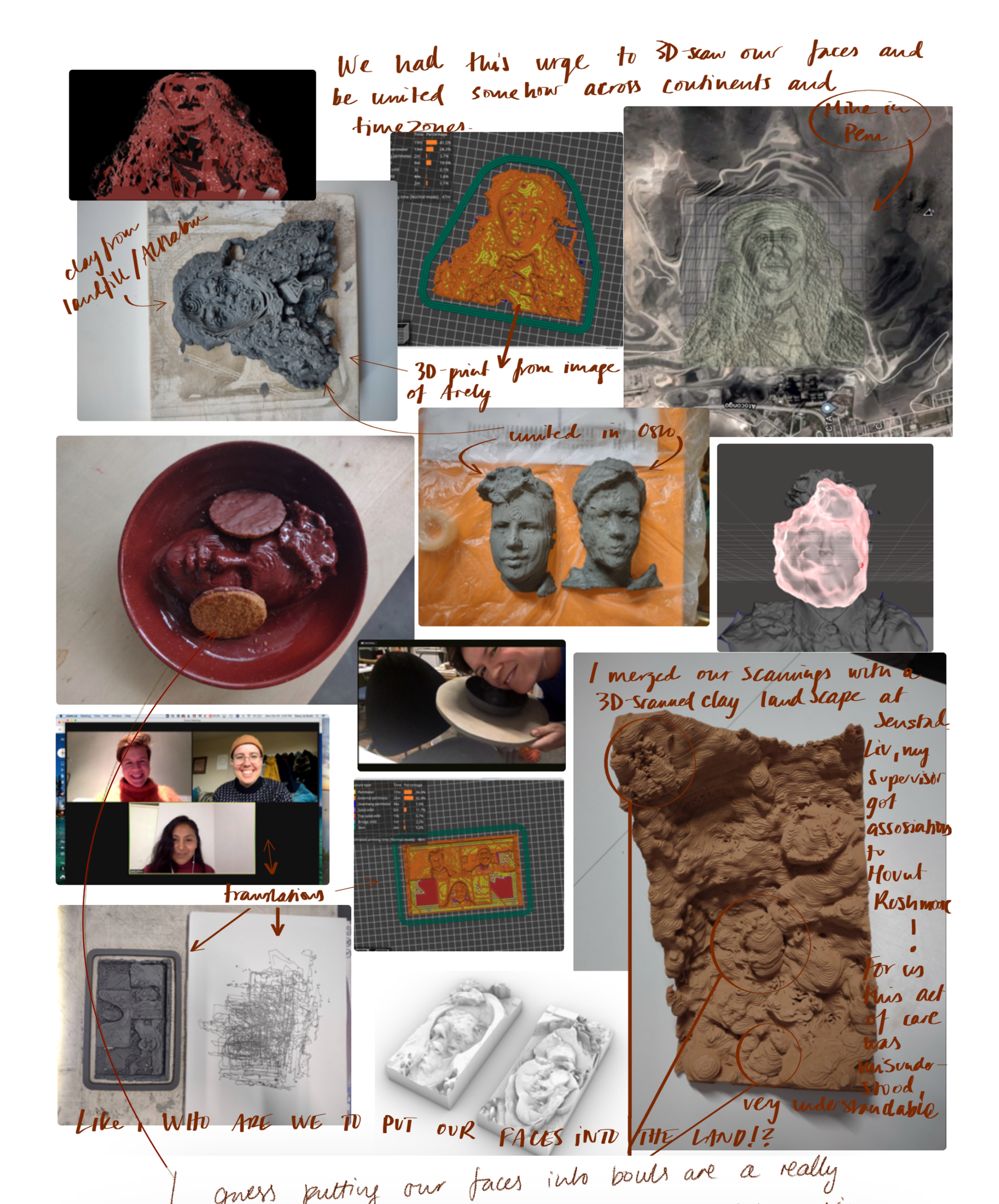 Til høyre: Videokollasj av bilder, tankekart, tegninger og 3D filer, laget av Arely Amaut.