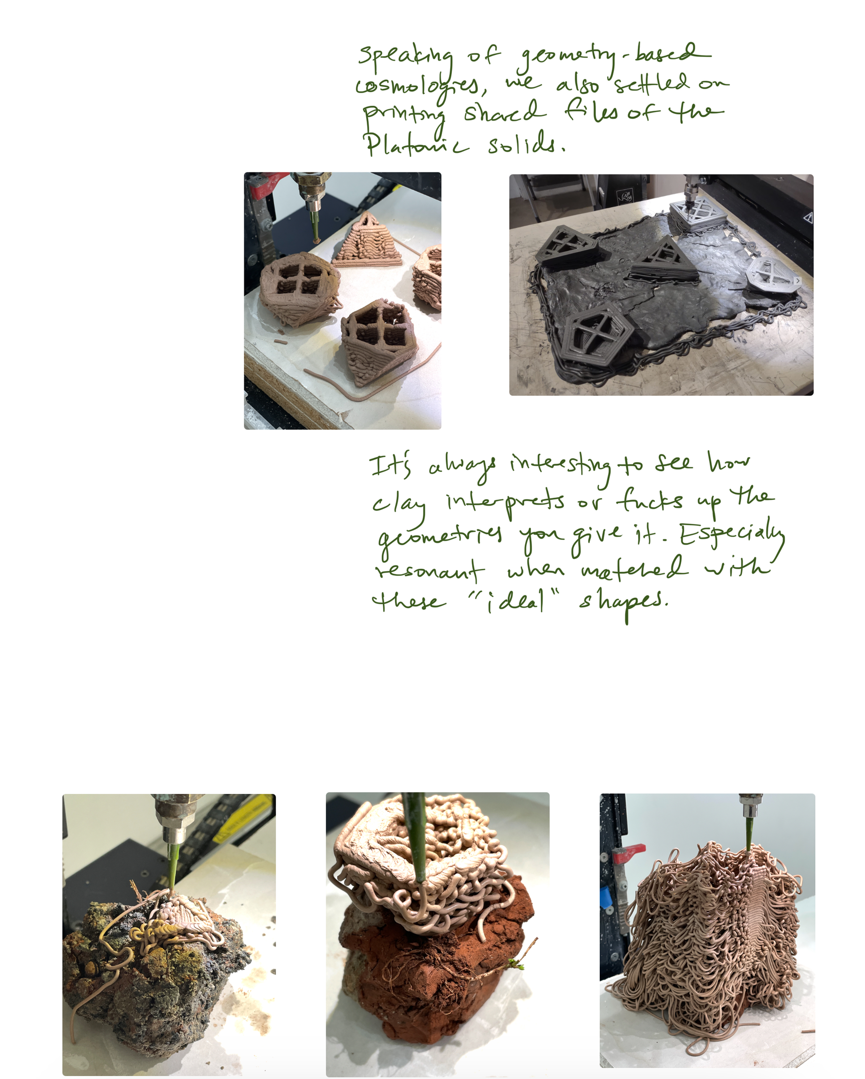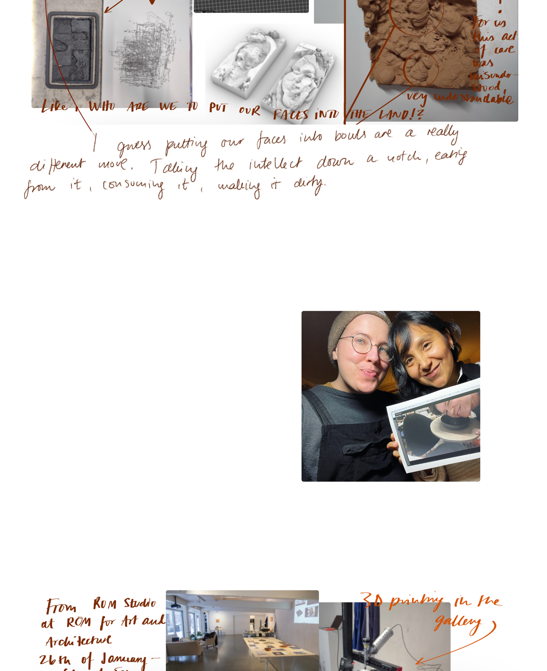Begge objekter ble 3D-printet under den arbeidende utstillingen Poetics of landness på ROM studio, ROM for kunst og arkitektur januar- februar 2022.