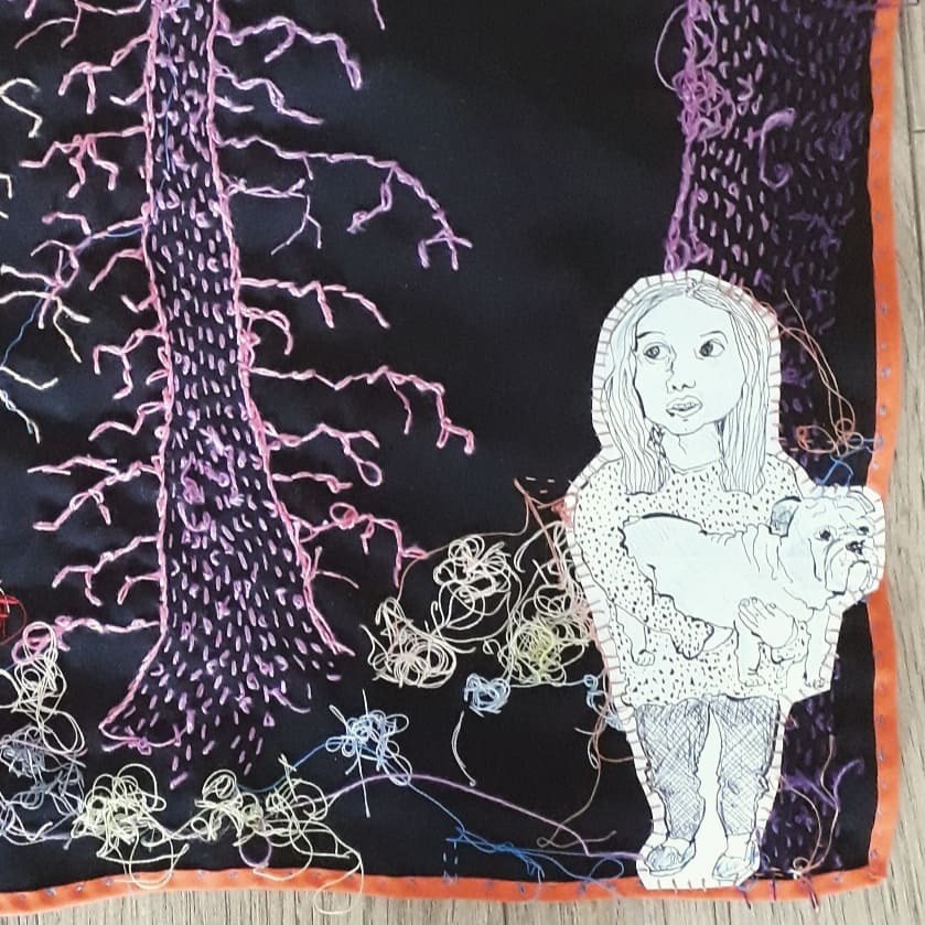 the material for the embroideries come from my maternal grand mother ; she gave me all here stuff ; half-finished projects ; i ate them, took them in my mouth, continued, re-worked.