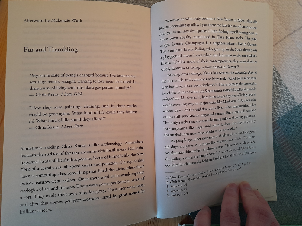 I am so tired. Thinking about metabolism (I am thinking, in the Night, I am thinking, on the verge of sleeping: I am thinking: is this my Method? I am thinking: Yes.) Chris Krauss comes to mind. I want to cite Mackenzie Wark’s afterword to Torpor (I am too tired, inserting a photo: