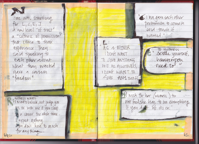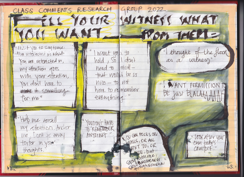 Below is a journal page of participants comments about what they wanted from and for a witness.