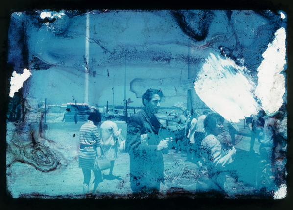 4. Artist Sean Wilson, found glass slide with water damage, of my father (c. 1960s).