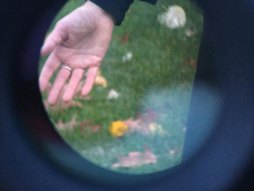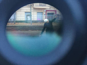 Short videos. The first highlights the intrigue of looking for someone, finding them and then the sudden re-emeregnce away from tunneled vision, pulled out of the state of mind in the encounter to face ordinary reality again. The second video is an experimental  play with small mirrors to find out if they helped visibility.