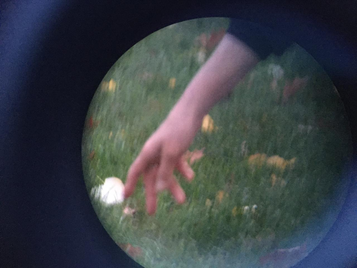 Witnessing with the aid of binoculars was beguiling. The binoculars helped physically focus attention. It was possible to scan around the landscape and at the same time re-find the Mover. Everything was interesting. With eyesight framed and guided by the external prosthesis of the binoculars, the ears seemed to accentuate their task of attending to the backspace and the periphery. I loved the witnessing most of all. I noticed that something dropped and settled inside of me. I knew that I was doing the right thing - I was holding up my part of the deal. I was focused on the Mover, the binoculars 'showed' that. And inside of the looking through, I could rest. It was my own hang-up, always questioning: am I witnessing correctly with enough non judgement?  Even though this question reveals a value assignment in iteslf,  the binoculars took the impossible-to-measure ' good enough' quotient out of the activity. This was tantalisingly interesting and freeing.