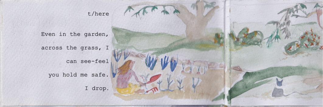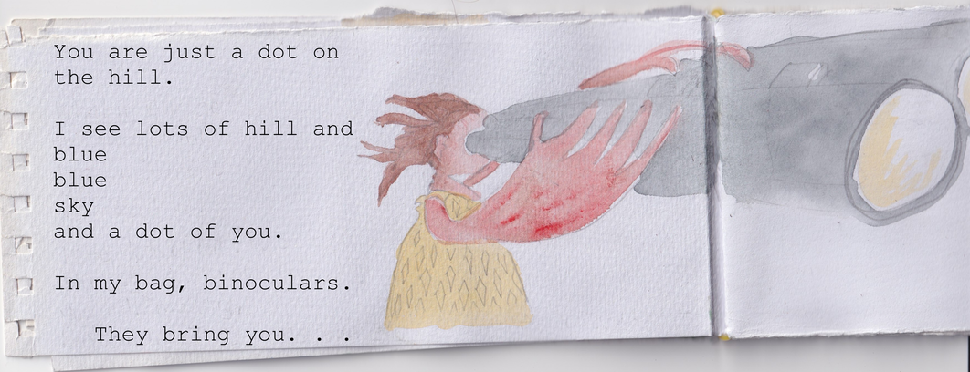 The story starts by considering what it feels like to be seen. The character remembers that being seen feels like dropping into a certain kind of safety and belonging. They feel it when hugged by their mother. They wonder.....can they feel this drop into safety even if they are not close in a hug?