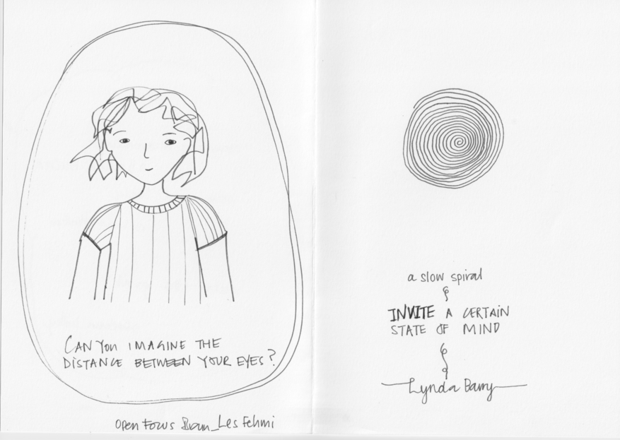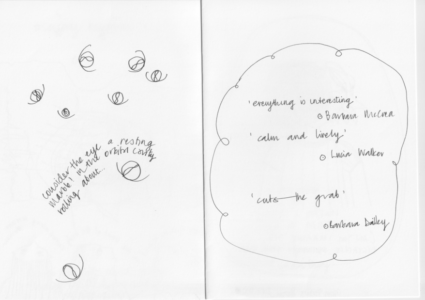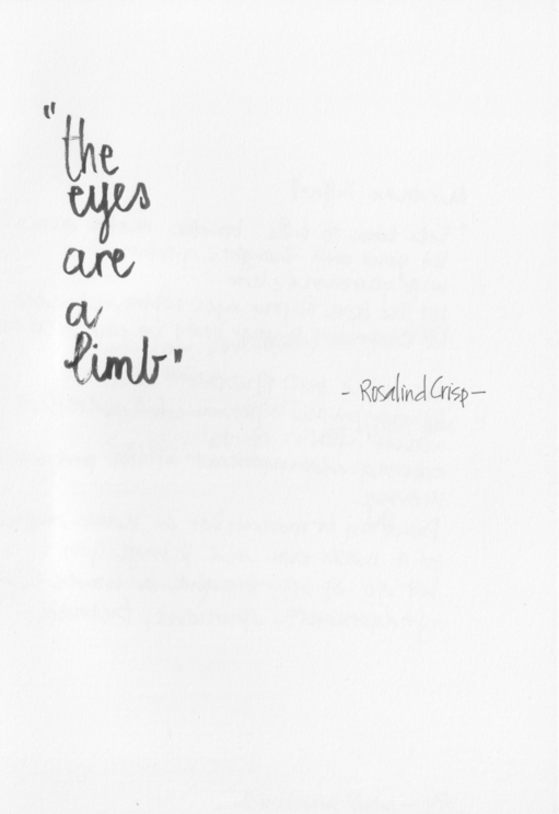This is an illustrated book I made one weekend, explaining the thing that happens in the eyes that seems to keeps us close. It is serves as a momentary stabalisation of knowing during the Practice as Research process.