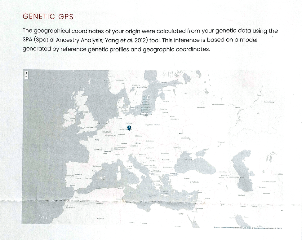 This is extraordinary enough: the author's Genetic GPS (Ancestral DNA report) happens to be in the centre of what is now the country of Germany