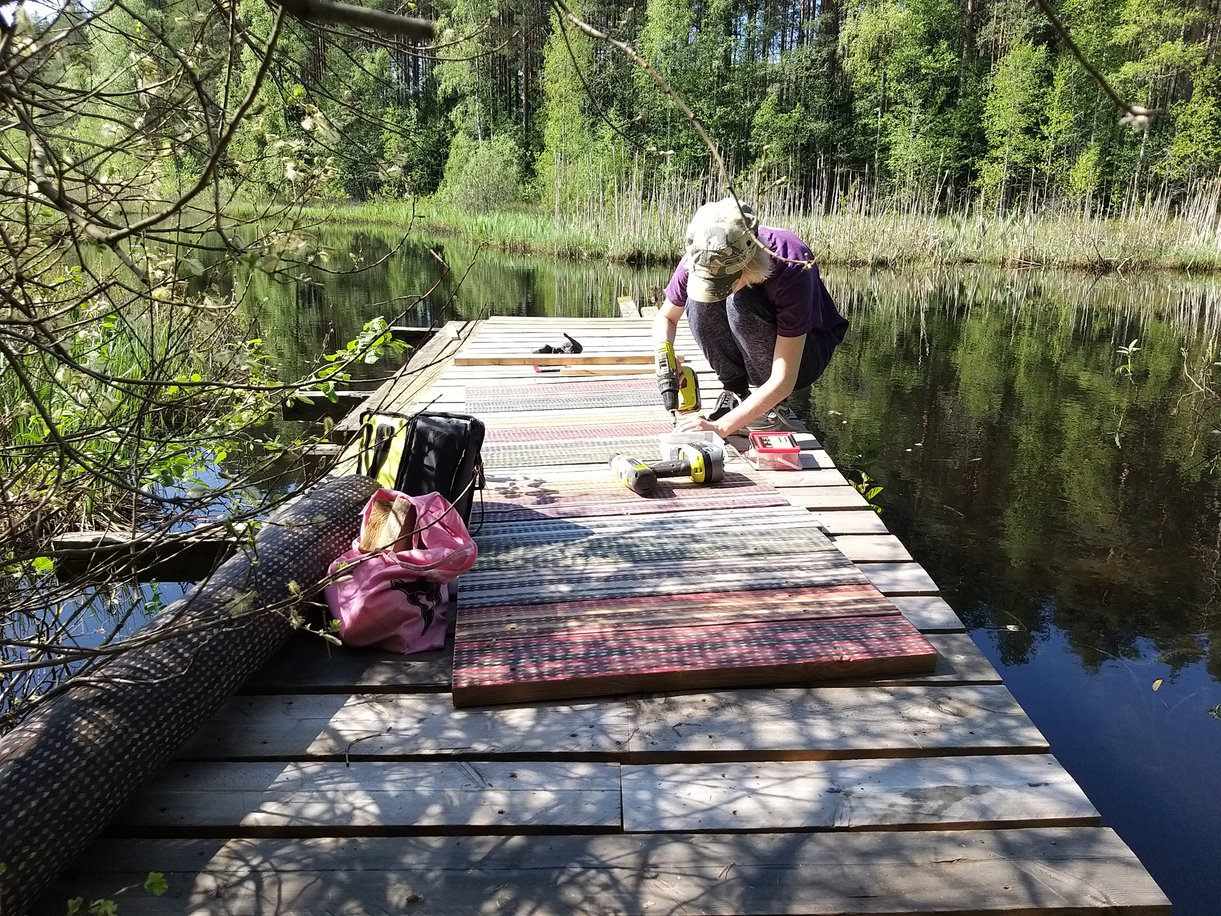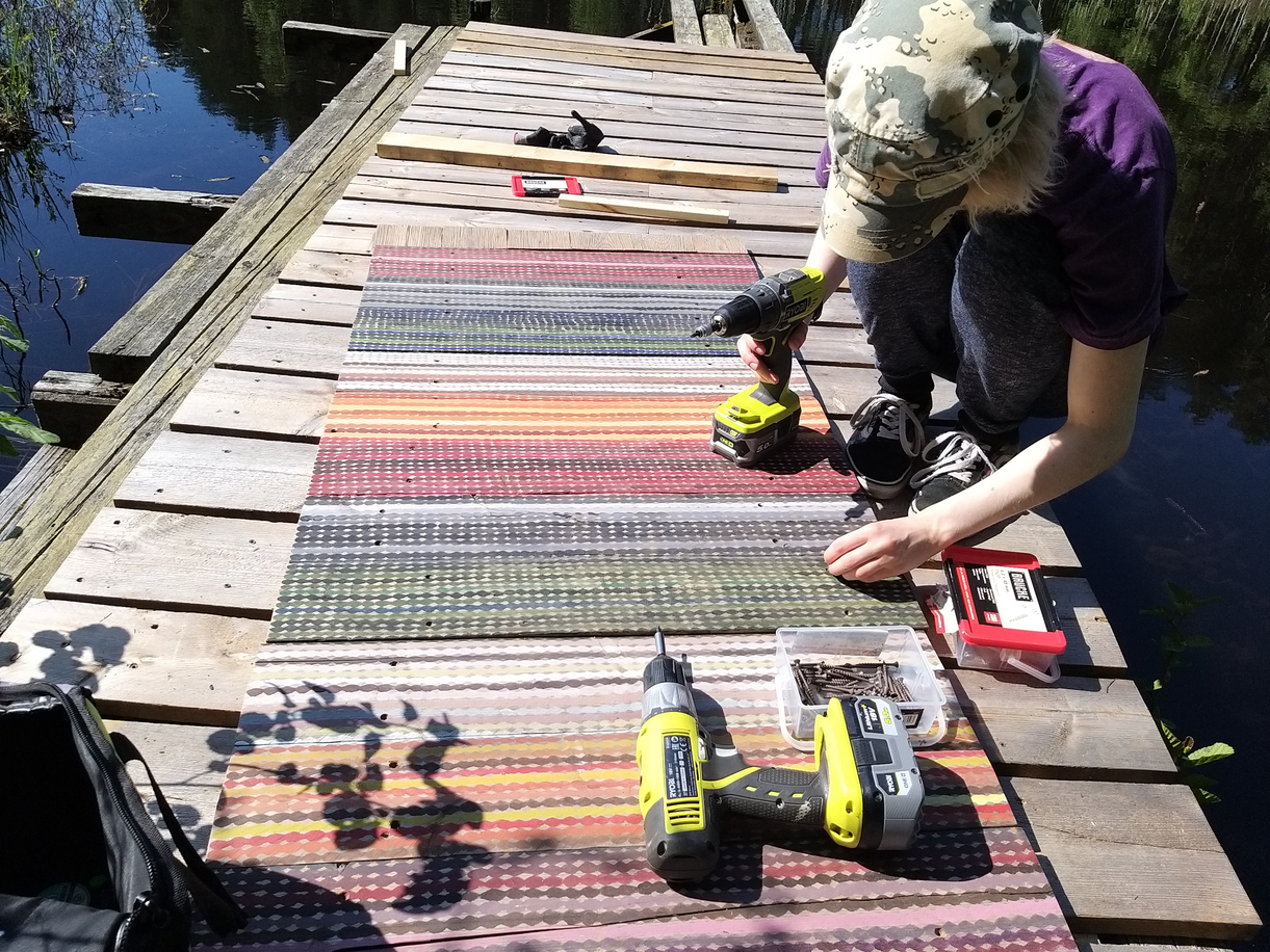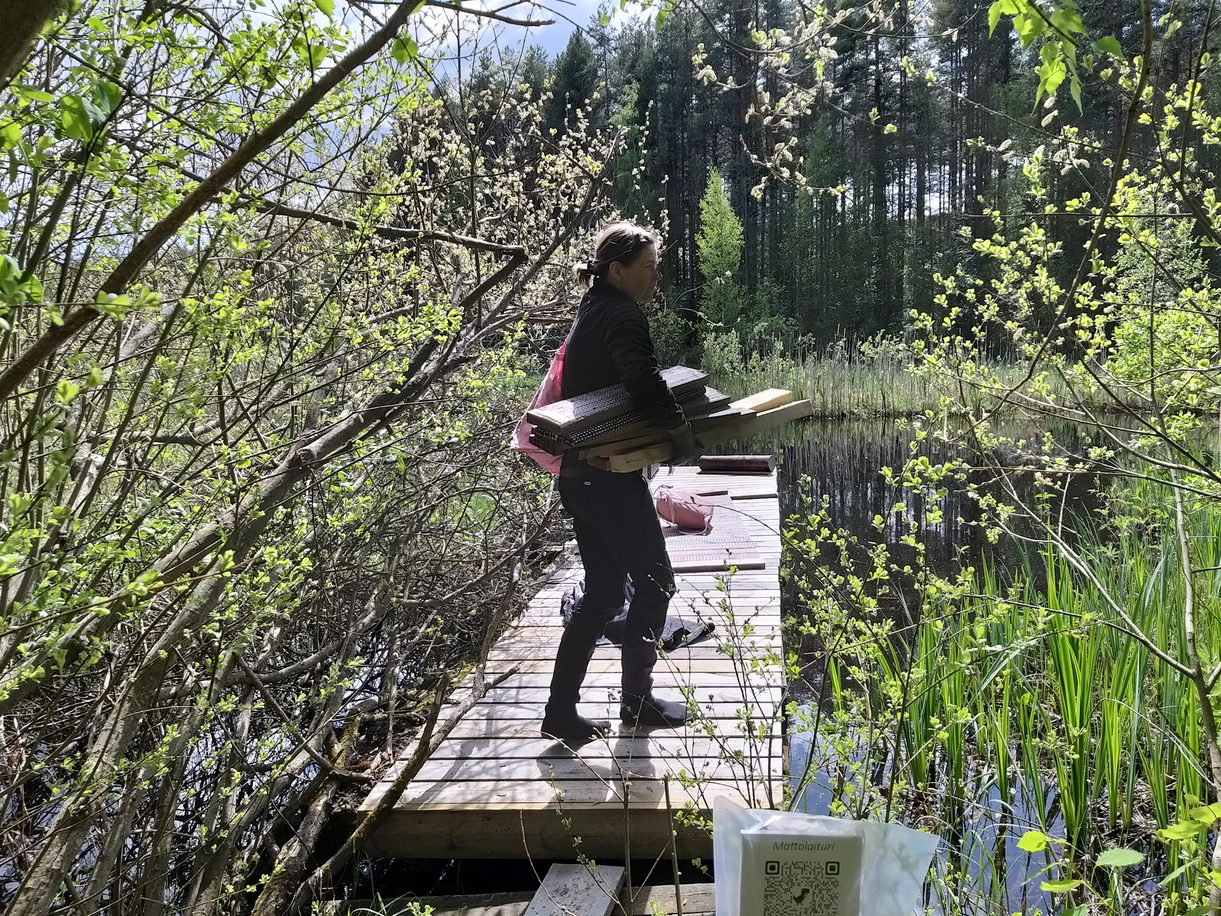 Mattolaituri (Carpet Pier) was a site- specific temporary wooden construction, located on the bank of the Pankajoki River in the small city of Mikkeli, Eastern Finland, during summer 2023. The artwork was a sort of a wooden narrative or a negation of a monument; a memory-bound sculpture, pondering how memory and materials intertwine. It was built on top of the demolished structures of an old, disused carpet pier. The support of the old pier, the railings, the surface boards, and the wooden carpets were made of recycled wood. The artwork was not advertised or explained, nor were ans audience or spectators specifically invited to visit it. The aim was for it to be found by passers-by on the riverbank, as if by accident.