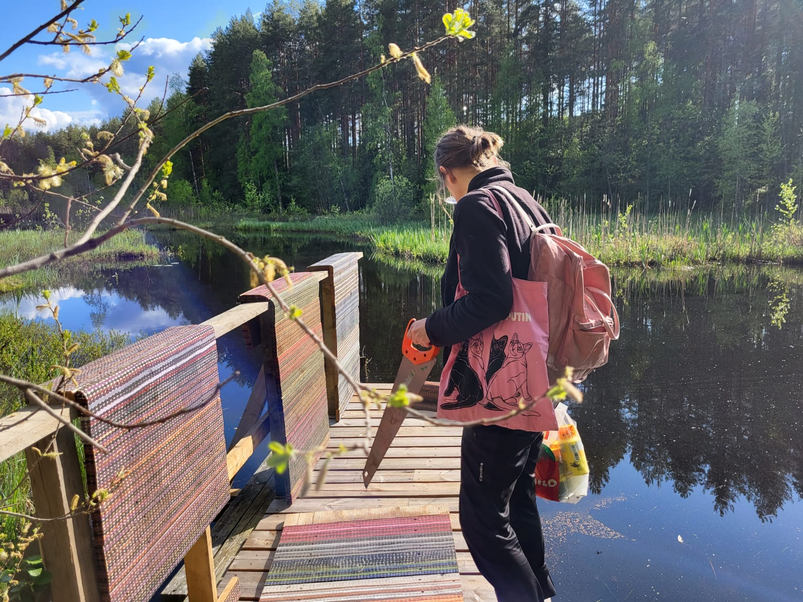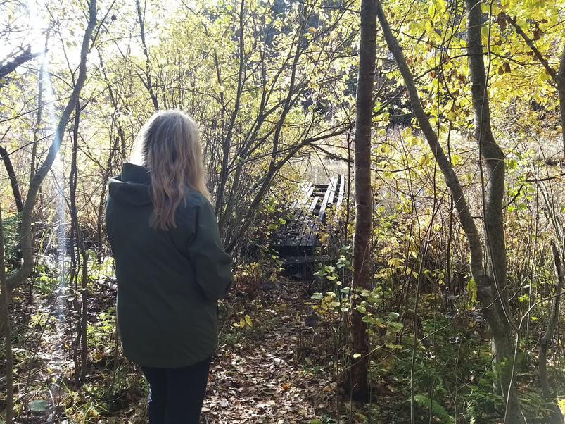 But I did go to this river bank with my grandma to wash the carpets. I have washed many litres of soap and slag to the bottom of the river; man-made chemicals and secrets hidden under carpets. I feel a bit guilty, cause this river is now so eutrophic and overgrown. There have been many other washing places here. And there have also been swimming spots here. Many have recalled how they have swam here. I was not allowed to come here alone to the beach. My mom had lost one of her childhood friends here. She drowned on the other side of street next to the old playground. At that time there was a strong current, now this water hardly flows at all.