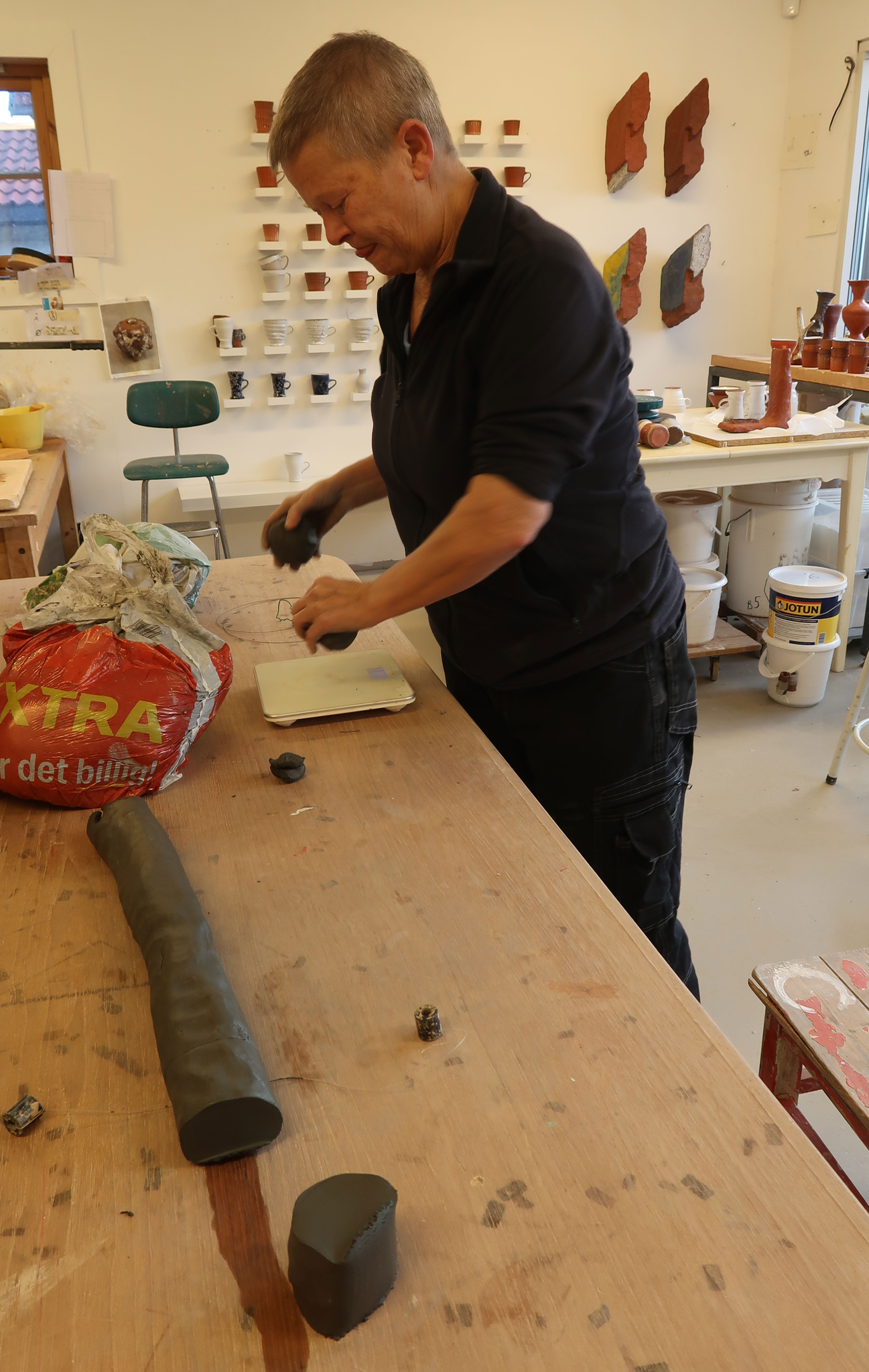 AL Ja, denne er litt stivere. Ja, da tar vi den blåeste leira først.