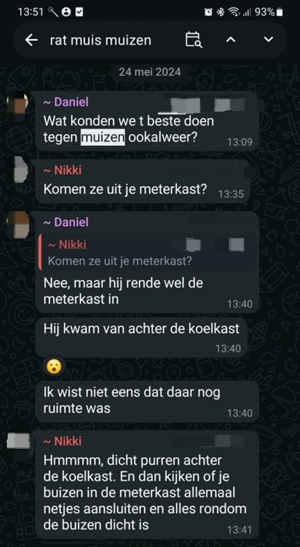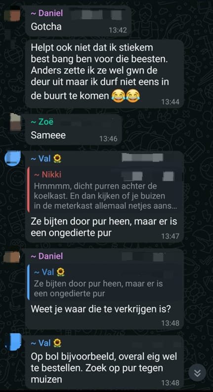 In de WhatsApp-groep van mijn wooncomplex (de Fuik) wordt veel gesproken over ratten, muizen en soms ook over zilvervisjes en spinnen. Ze hebben allemaal iets overeenkomends: ze zijn niet welkom. Hieronder en in de link in het plaatje naast de titel staan WhatsApp reacties en mededelingen over dit onderwerp.