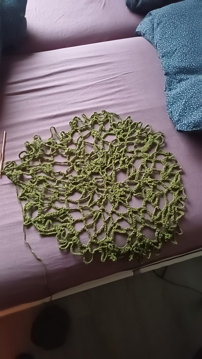 Textiel: ziet er minder mooi uit als het slechts stof is. Met gaten erin is het wel meer webachtig. Dit maakt het ook minder stevig. Misschien moeilijk om in te schatten wat de draagkracht is en om 3 bij 3 meter geschikte tweedehands stof te vinden. Het zou wel een stuk sneller kunnen zijn dan het handmatig haken van een net.